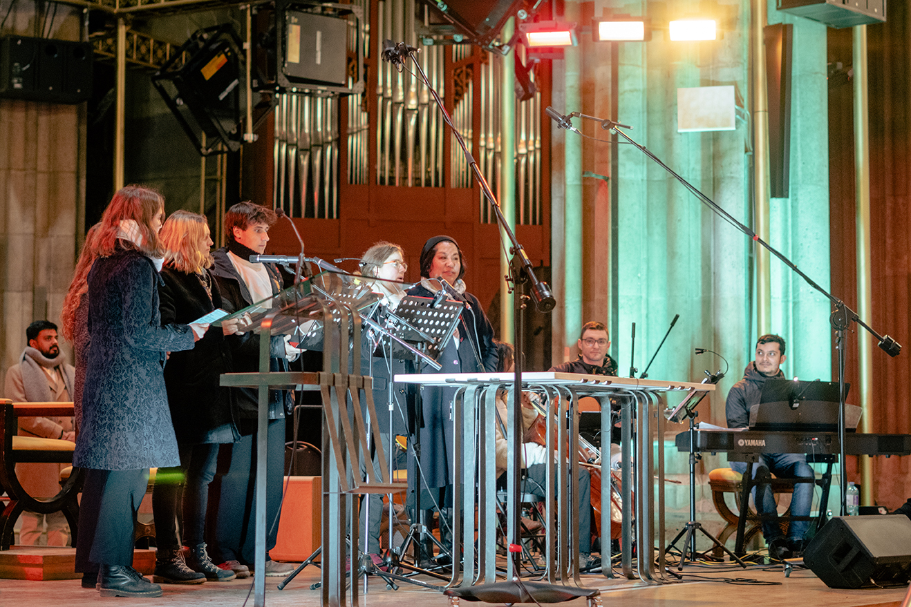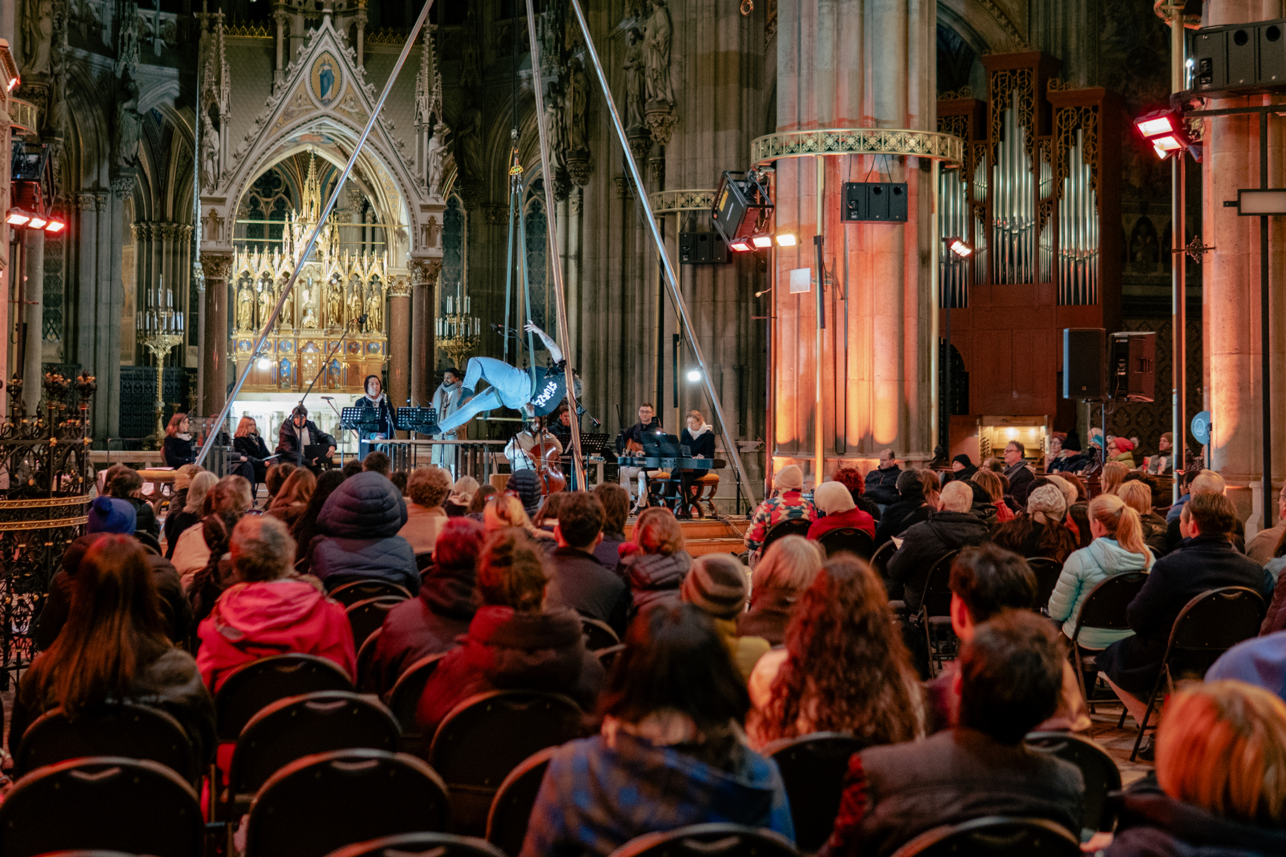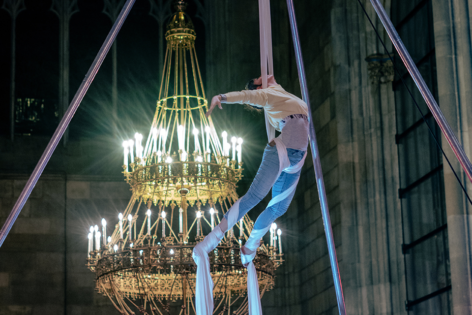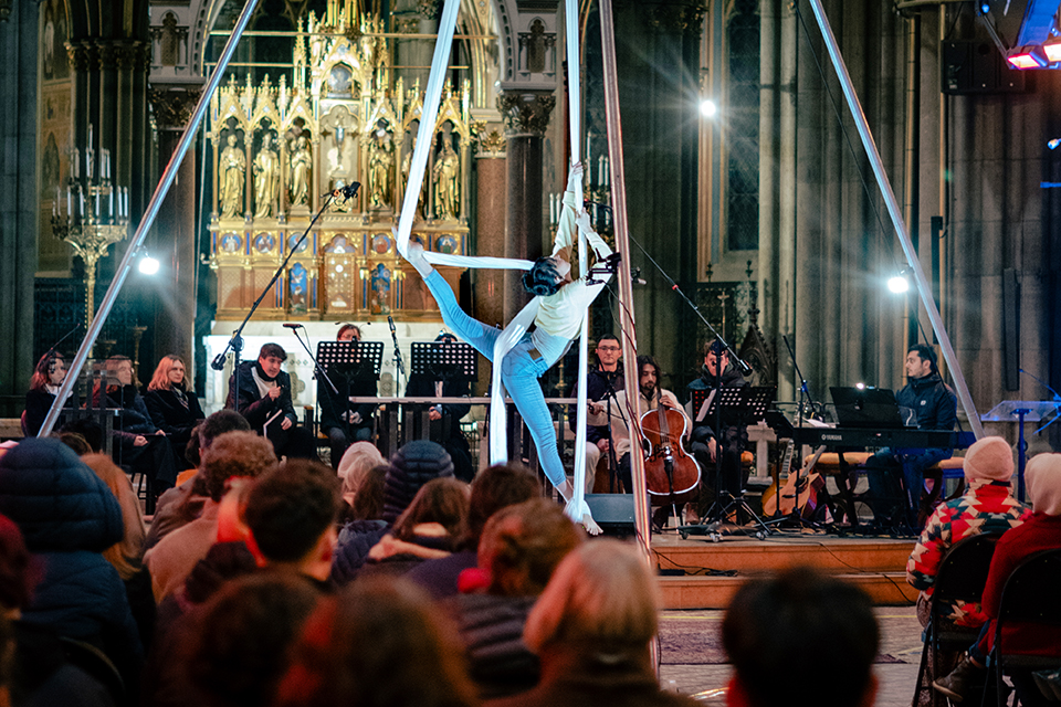 Der Choreograph Ariel Uziga, der die körperlich-performativen Teile gestaltet, erklärt den künstlerischen Zugang des Kreuzweges: „Die Kunst schafft eine ganz neue Form des Zuhörens: Die Musikerinnen und Luftakrobatinnen ermöglichen eine besondere Aufmerksamkeit für Vielfalt, die verbindend wirkt.“